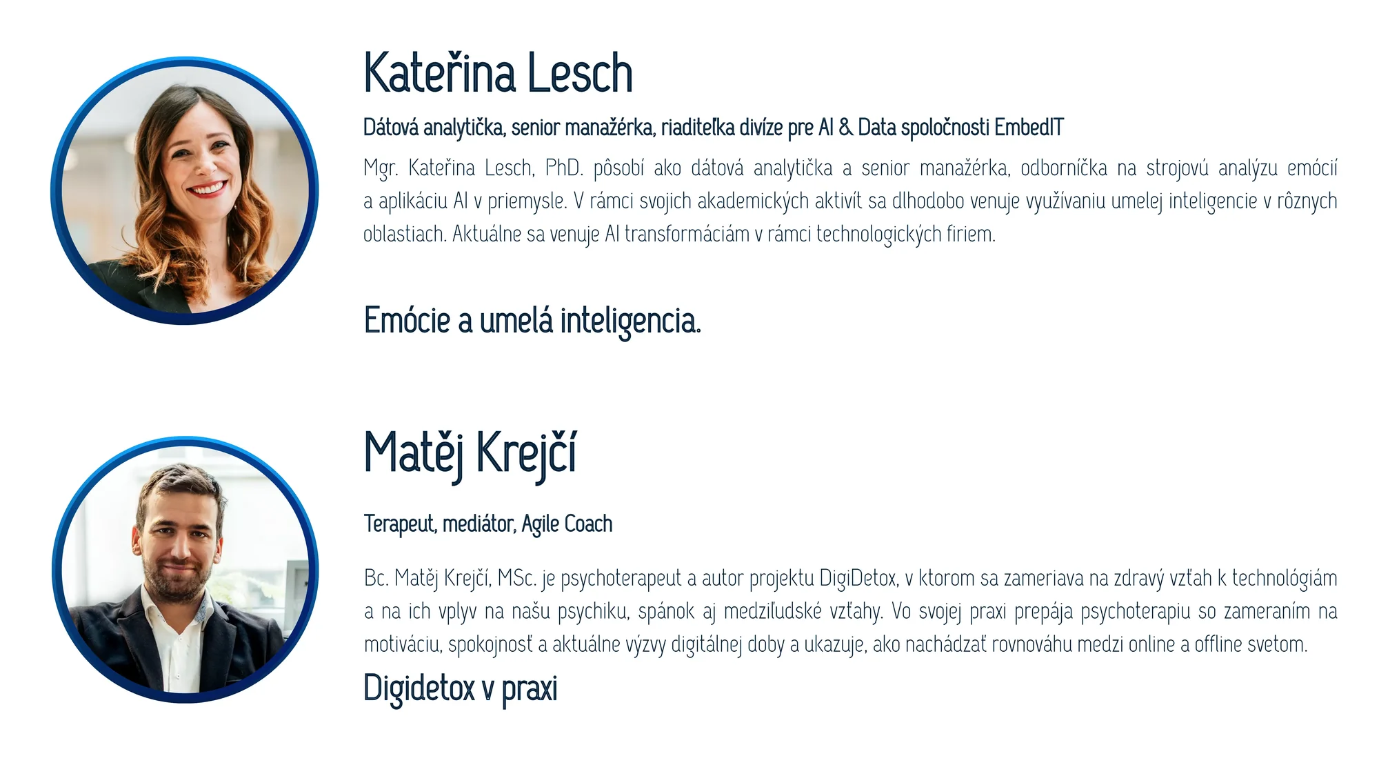Účastníci získajú inšpirácie a praktické rady ako vedome a zodpovedne využívať technológie a zároveň si zachovať ľudskosť, odolnosť a kritický nadhľad v súčasnom čoraz technologickejšom svete.